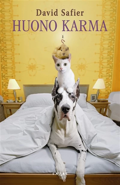 Bazar Kustannus on totisesti käyttänyt kaikki niksit luodakseen Huonolle karmalle (Mieses Karma, 2007) niin myyvän lookin kuin ikinä kykenee. Jos kannen söpöt eläimet ja juonen parhaat yksityiskohdat paljastava takakansiteksti eivät vielä saa lukijaa tekemään ostopäätöstä, löytyy kansipaperista myyntilukuja, bestsellerlistaviikkoja, käännösoikeusmääriä, arvosteluista lainattuja ylisanoja seitselmältä eri lehtijulkaisulta (kolmesta eri maasta!) ja maininta kirjailijan voittamasta käsikirjoittaja-Emmystä. ”Huono karma on saanut Euroopan tikahtumaan nauruun” - voiko enää enempää odotuksia kirjankansien painolastiksi kasata?
