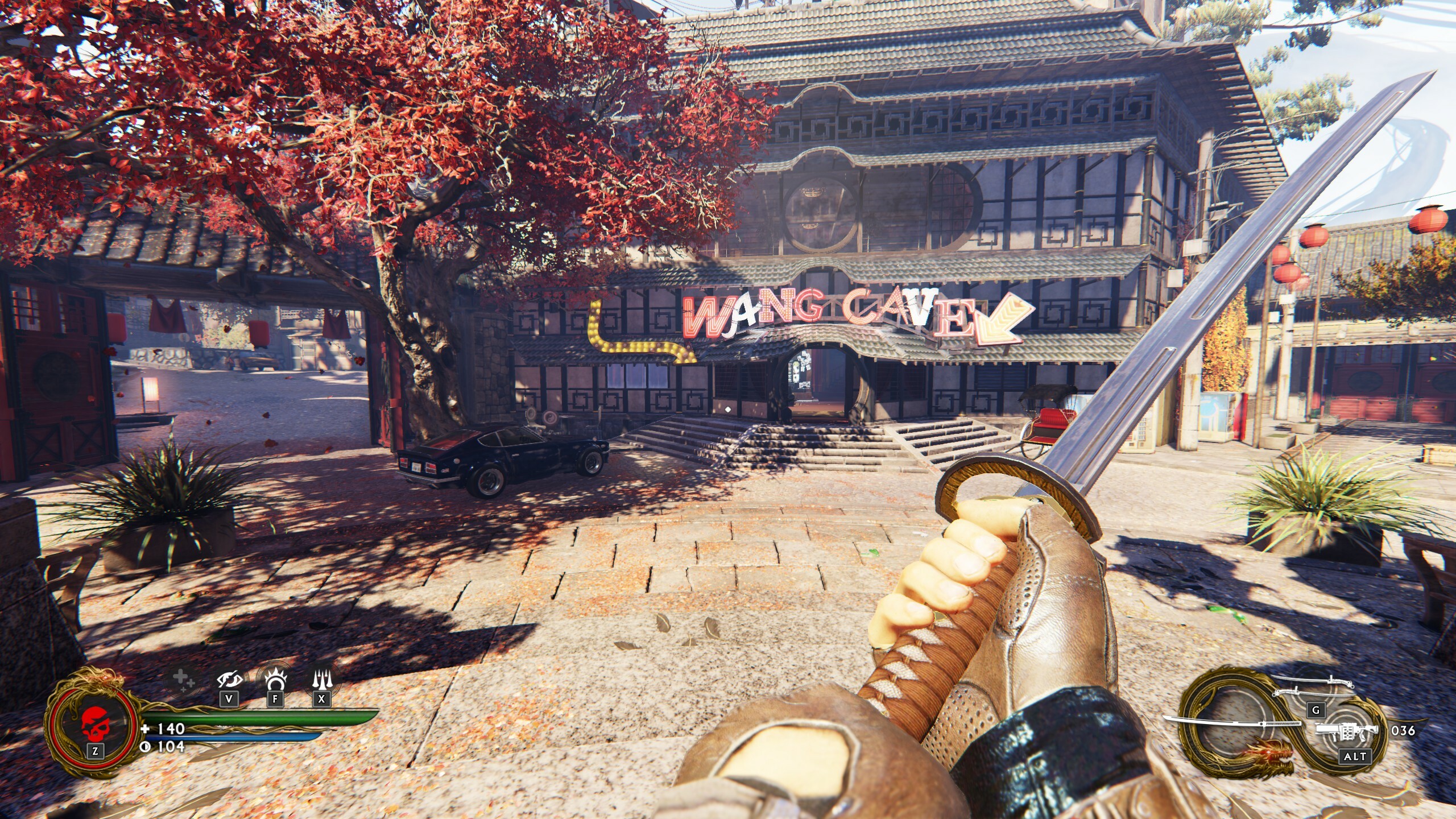 Kuten odotin, pelissä on tosiaan paljon huumoria, joka keskittyy enimmäkseen törkyosastolle, vaikka erityisen rivoksi tai ilkeäksi ei läpänheitto missään vaiheessa eskaloidu. Penisvitsejä kuullaan säännöllisesti, mutta miehisiin elimiin viitataan aina kiertoteitse, kuten sanalla "wang", joten herkimpien pelaajien ei tarvitse järkyttyä. Valtaosa huumorista syntyy miekkasankarin ja hänen päänsisäisen asukkinsa välisestä kinastelusta, sillä kumpikin provosoi toista jatkuvasti, mikä huvittaa aluksi, mutta alkaa tympäistä lopulta aina vain pahemmin. Mafiapomon tytär on erittäin rasittava ruikuttaja, josta pelaaja haluaa päästä yhtä nopeasti eroon kuin hänen piinaamansa miesparkakin. Valitettavasti näin käy vasta pelin lopussa, joten vittuilua saa kuunnella enemmän kuin tarpeeksi. On hahmojen sarkastisessa sanailussa onneksi hetkensäkin ja Lo Wangin aasia-aksentilla solkkaama englanti kuulostaa jo itsessään hauskalta.